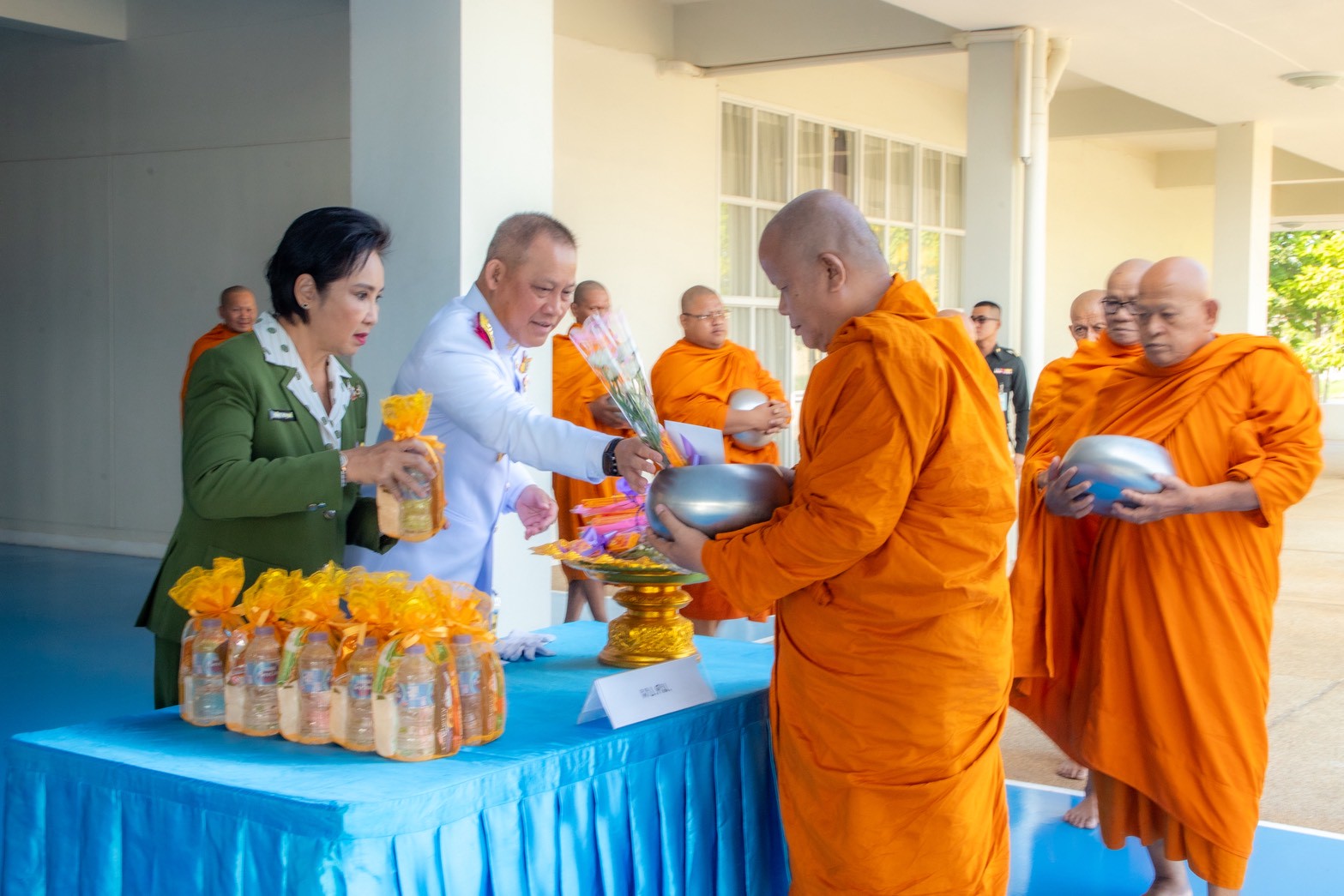 - พิธีเจริญพระพุทธมนต์ และทำบุญตักบาตรพระสงฆ์